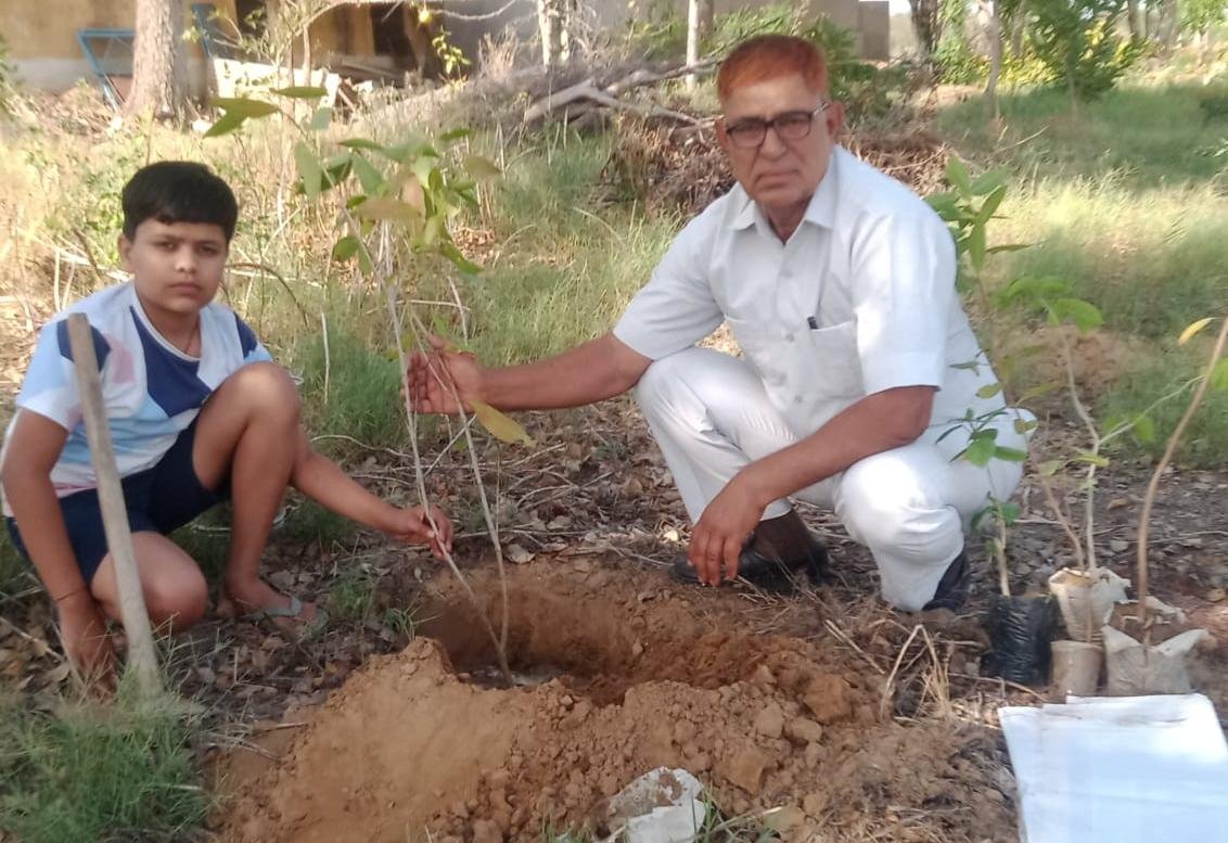 वृक्ष मित्र जाखड़ द्वारा पत्रकार, कवि हरीश शर्मा के जन्मदिन पर किया गया वृक्षारोपण