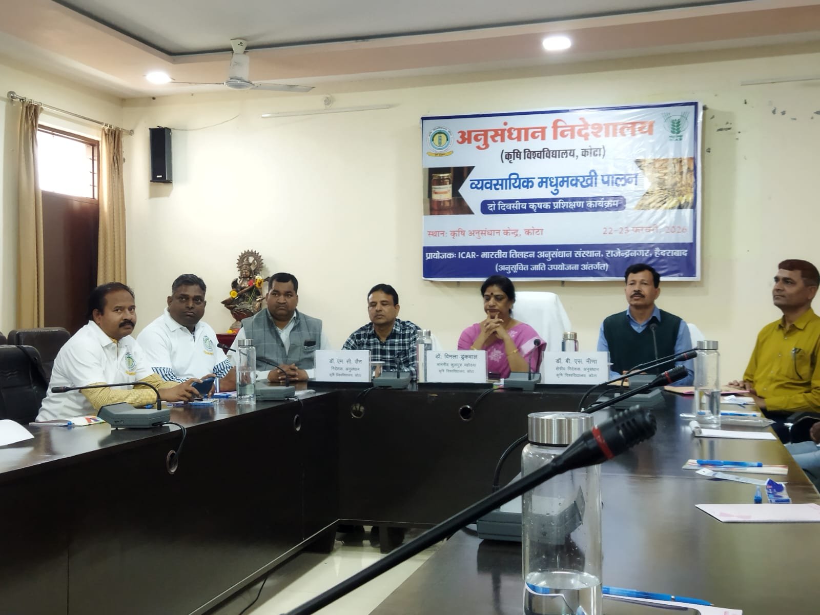 डॉ. बी. एस. मीणा ने प्रशिक्षणार्थियों को क्षेत्रिय स्तर पर मधुमक्खीपालन की संभावनाओं पर प्रकाश डालते हुए इसे आत्मर्निभरता की दिशा में एक महत्वपूर्ण कदम बताया। डॉ. आर. के बैरवा ने मंच संचालन करते हुए फसलों की उपज बढ़ाने में मधुमक्खिया भूमिका के बारे में बताया।