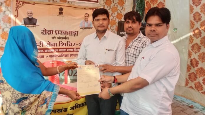 भरतपुर|स्मार्ट हलचल|कस्बा वैर के शहरी सेवा शिविर 2025के अंतर्गत नगर पालिका परिसर में आज कैंप का आयोजन किया गया जिसमें नगर पालिका अध्यक्ष विष्णु महावर, एवं अधिशाषी अधिकारी जितेंद्र गर्ग, एवं लेखा शाखा कर्मचारी जितेंद्र गुर्जर ,द्वारा कैंप के अंतर्गत पांच पट्ठे का वितरण किया गया ।एवं स्वनिधि योजना के अंतर्गत दो व्यक्तियों को लोन उपलब्ध करवाया गया । स्वच्छ भारत स्वच्छ मिशन के तहत जिसमें कई जगहों से से कचरा भी उठाया गया। कस्बे के अंदर एवं दामोदर जी के मंदिर के पास से, पुरानी सब्जी मंडी से कचरा भी साफ करवाया गया। कैंप में