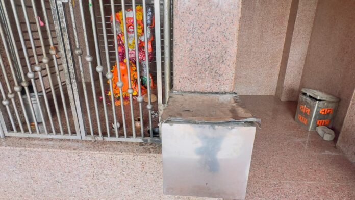 चोरों ने मंदिर में रखे दान पात्र को तोड़कर चोरी की वारदात को अंजाम दिया है