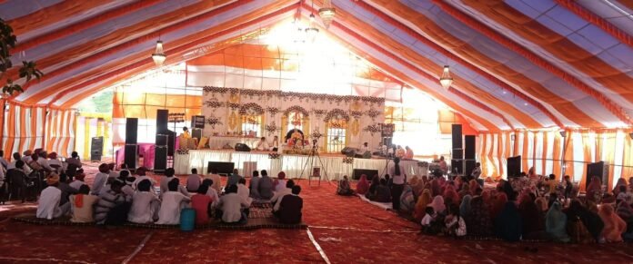 सवाईपुर ( सांवर वैष्णव ):- सवाईपुर कस्बे के निकटवर्ती नोहरा ( जित्यास ) गांव में काली छाट के देवनारायण मंदिर प्रांगण में चल रहे 21 कुंडात्मक विशाल श्री विष्णु महायज्ञ एवं श्रीमद् भागवत कथा के तीसरे दिन स्थापित देवी देवताओं की पूजा अर्चना के बाद देवनारायण भगवान की आहुतियां लगाई । ग्रामीणों ने बताया कि काली छाट के देवनारायण मंदिर पर अखंड रामायण पाठ की पूर्णाहुति के उपलक्ष्य पर श्री विष्णु महायज्ञ व श्रीमद् भागवत कथा का आयोजन को लेकर नौ दिवसीय 21 कुंडात्मक श्री विष्णु महायज्ञ की शुरुआत शुक्रवार को कलश यात्रा के साथ हुई । सह यज्ञाचार्य हरिशंकर दाधिच ने बताया कि तीसरे दिन रविवार को प्रातः 8:15 बजे मंडप प्रवेश किया, उसके बाद यज्ञाआचार्य पंडित धर्म नारायण वैदाचार्य के मंत्रोच्चार के साथ स्थापित देवी देवताओं व चारभुजा नाथ की पूजा अर्चना की । वही पंडितों के वैदिक मंत्रोचार के साथ 21 हवन कुंड पर 21 जोड़ों के द्वारा स्थापित देवी देवताओं के नाम आहुतियां लगाई । निज मंदिर पर देवनारायण भगवान की पूजा-अर्चना की । पंडितों के मंत्रोच्चार के साथ जोड़ों ने देवनारायण भगवान के नाम की 31 हजार आहुतियां लगाई, दोपहर 1:15 बजे आरती की गई । इसके बाद स्वामी जगदीश पुरी महाराज हनुमद् धाम गोशाला शक्करगढ़ के मुखारविंद से श्रीमद् भागवत कथा का वाचन किया गया, जिसका लोगों ने बड़े ही भक्ति, श्रद्धा और भाव के साथ श्रवण किया । रात्रि के समय मेला प्रांगण में लगे डॉलर, चकरी, झूले का आसपास के गांवों से पहुंचे लोगों ने खूब आनंद लिया और डॉलर चकरी में खुब झूले, ग्रामीण महिलाओं व युवतियों ने मेले में जमकर खरीददारी भी की, आसपास के कई गांवों से ग्रामीण मेला देखने पहुंच रहे हैं ।।
