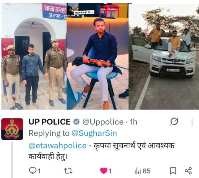 इटावा। स्मार्ट हलचल|अभियुक्त अवैध राइफल रखता है वह भारत सरकार लिखी गाड़ी में चलता है उसे गाड़ी से स्टंट करता है वीडियो बनाता है वह मुख्यमंत्री व पुलिस को आपत्तिजनक भाषा का प्रयोग करते हुए वीडियो बनाता है और उसे सोशल मीडिया पर वायरल करता है इतना सब होने के बाद भी आखिर ऊसराहार थाने की पुलिस अभियुक्त पर क्यों मेहरबान है। अभियुक्त पूर्व में जेल भी जा चुका है लेकिन पुलिस ने उक्त मुकदमा तब लिखा जब सोशल मीडिया पर पुलिस की फजीहत हुई लेकिन अभी तक अवैध गाड़ी और अवैध राइफल पुलिस ने बरामद नही की। इस मामले में डीजीपी मुख्यालय द्वारा भी कार्रवाई का आदेश किया गया था लेकिन डीजीपी के आदेश को भी ऊसराहार पुलिस ठेंगा दिखा रही है और अभी तक कोई कार्रवाई नहीं की गई।
