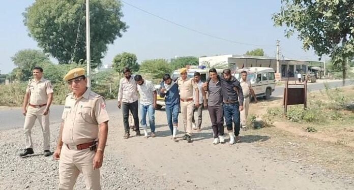 भीलवाड़ा । शंभूगढ़ थाना पुलिस ने युवक के साथ मारपीट करने और उस पर जानलेवा हमला करने के आरोप में 5 आरोपियों को गिरफ्तार किया है जिन्होंने सांगणी निवासी युवक ओमप्रकाश गुर्जर के साथ मारपीट कर उस पर सरिए और लाठियो से हमला कर दिया था और पिस्टल लहराई थी । पुलिस ने इस मामले में आरोपी गजेन्द्र गुर्जर, ईश्वर लाल गुर्जर, चेतनसिह चुण्डावत, पवन गिरी उर्फ शम्भुगिरी गोस्वामी, राजु उर्फ राजेन्द्र गुर्जर को गिरफतार किया है । एसपी धर्मेन्द्र सिह के आदेशानुसार संगठित अपराधो के विरूद्व जारी अभियान के तहत राजेश आर्य ,आर.पी.एस. पुलिस अधीक्षक शाहपुरा व जितेन्द्र सिंह आरपीएस वृताधिकारी गुलाबपुरा के सुपरविजन में मोतीलाल उनि थानाधिकारी थाना शम्भूगढ मय टीम द्वारा संगठित रूप से अपराध कारित करने वालो के खिलाफ कार्यवाही की गई । 17 अक्टूबर को को प्रार्थी ओमप्रकाश पिता धर्मा गुर्जर निवासी सांगणी पुलिस थाना शंभुगढ जिला भीलवाडा ने कैलाश गुर्जर पिता धर्मा गुर्जर निवासी सांगणी थाना शम्भूगढ, गजेन्द्र पिता धर्मा गुर्जर निवासी सांगणी थाना शम्भूगढ त॰ अण्टाली, राजू गुर्जर पिता नारायण गुर्जर निवासी भीमलत थाना शम्भूगढ त॰ अण्टाली, पप्पू गिरी पिता शम्भू गिरी निवासी भैरुखेडा (लावडा खेडा), सुरेश गिरी पिता किशन गिरी निवासी भैरुखेडा, देवा पिता नारायण गुर्जर निवासी भैरुखेडा, देवा पिता मेवाराम गुर्जर निवासी बारणी , पवन गुर्जर पिता नामालूम निवासी मोटरास, ईश्वर गुर्जर पिता शम्भूलाल गुर्जर निवासी दौलाखेडा और 3-4 अन्य के खिलाफ थाने में रिपोर्ट दी थी जिसमे बताया की 17 तारीख की शाम को प्रार्थी बालाजी का खेडा बरसनी रोड पर उसकी मोटरसाईकिल का पिंचर निकलवा रहा था तभी सभी आरोपी हम सलाह होकर आये और बीना कोई कारण लाठी सरिए और स्टिक से उस लार पर जानलेवा हमला कर दिया जिससे उसके शरीर पर काफी चोटे आई और उसका एक पैर टूट गया तभी आरोपी गजेन्द्र गुर्जर ने पिस्टल निकालकर फायरिंग करने की कोशिश की लेकिन पिस्टल चली नही चिल्लाने पर सभी आरोपी अपनी गाडीयो में बैठ कर फरार हो गये आरोपियों के पास बिना नम्बरी गाडीयां काले रंग की वेन्यु जिस पर गोस्वामी लिखा हुआ है और एक स्कॉर्पियो काले रंग की थी जिसे उसके उपर चढाने की कोशिश की । आरोपी किसी गैंग का संचालन भी करते है लोगो को डराते धमकाते है जिससे काफी लोग डरे हुए हैँ। उक्त रिपोर्ट के आधार कर पुलिस ने मामका दर्ज कर जांच शुरू की